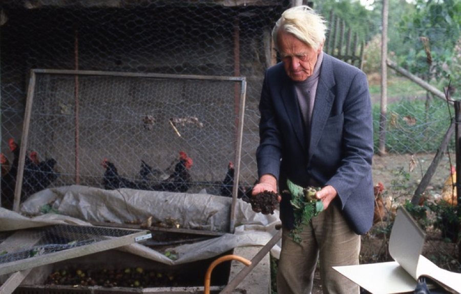 In seinem Lehrgarten ür den Obst- und Gemüseanbau, den er auch als Paradies bezeichnete, wurden den zahlreichen Besuchern regelmäßig das Wanderkompostbeet gezeigt (siehe Foto) und man durfte einmal am fertigen Humus riechen, der wie Walderde roch. Ein Zeichen dafür, dass die Kompostierung erfolgreich gelungen ist.